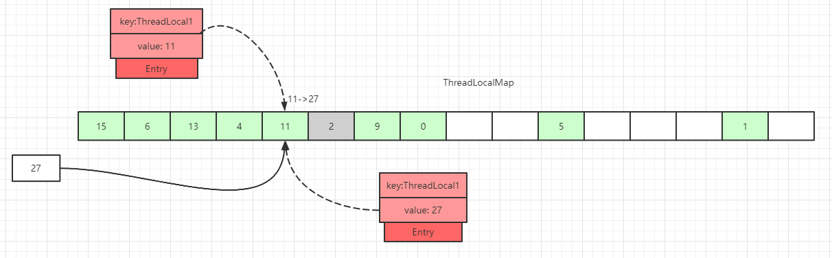 ThreadLocalMap有点类似HashMap的结构,只是HashMap是由数组+链表实现的,而ThreadLocalMap中并没有链表结构。