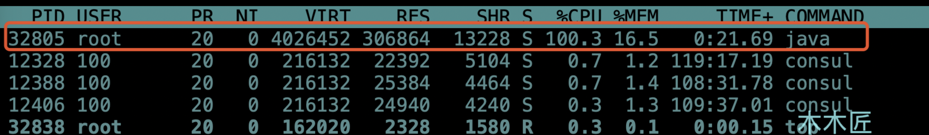 87130 root 20 0 4194788 299056 13252 R 4.3 16.1 0:40.51 java
