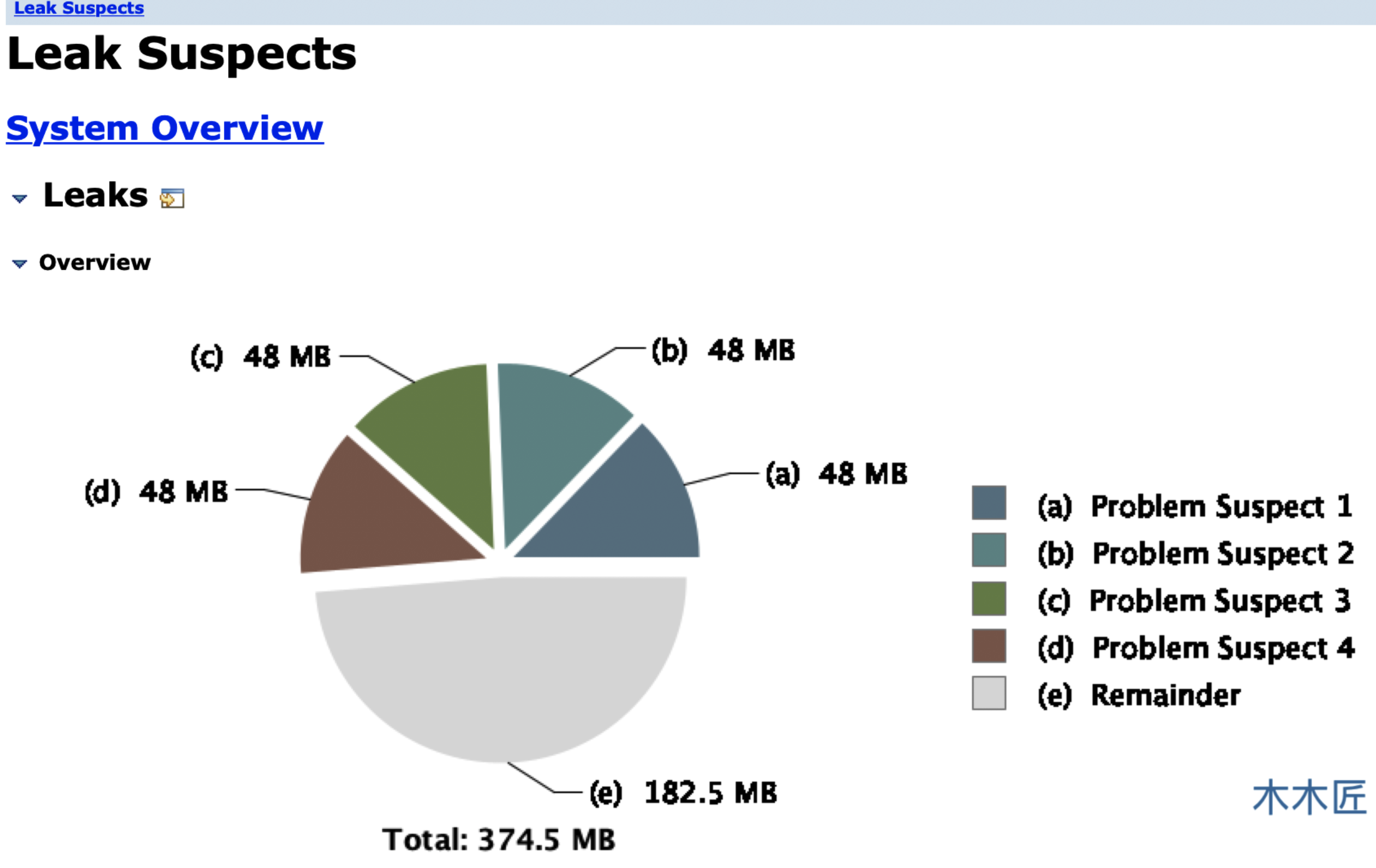 这里已经列出了可疑的4个内存泄漏问题,我们点击其中一个查看详情。